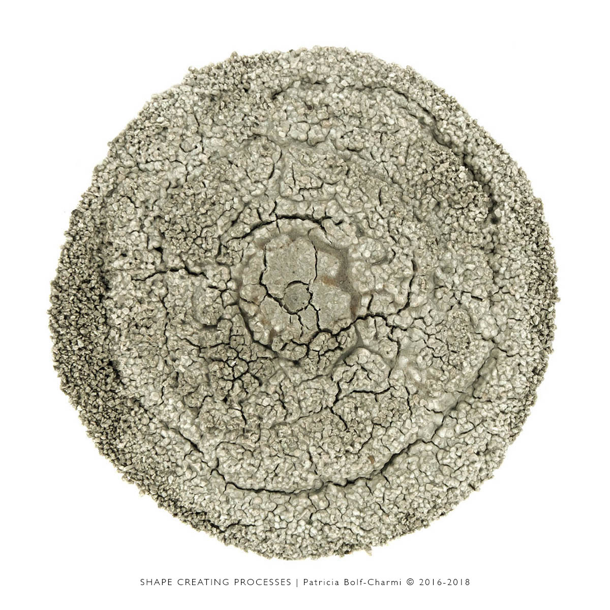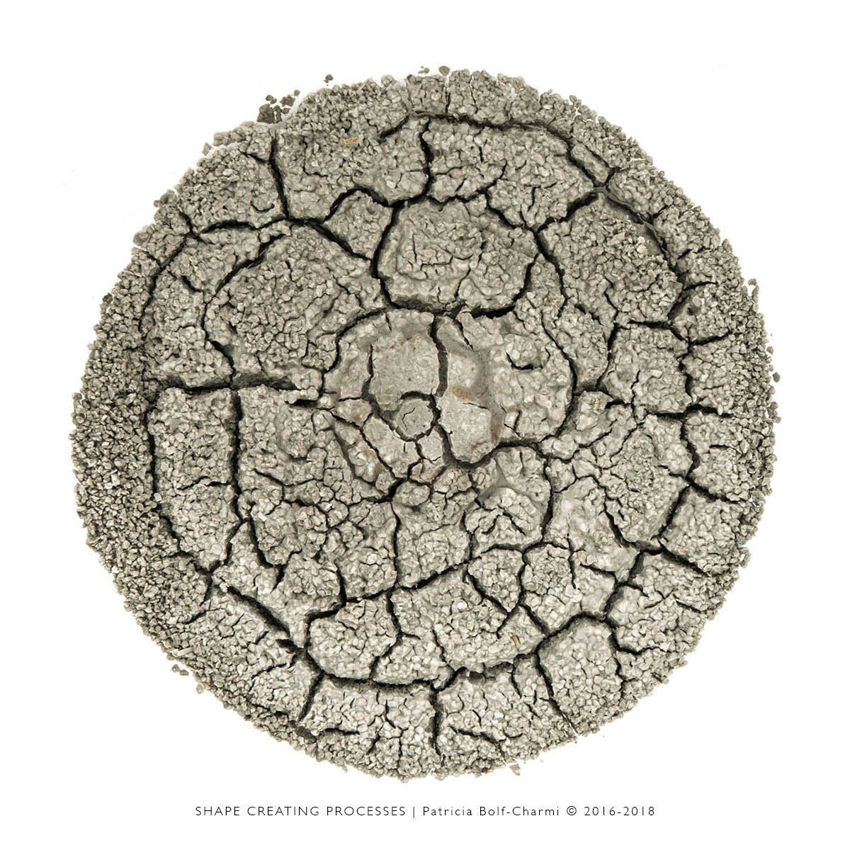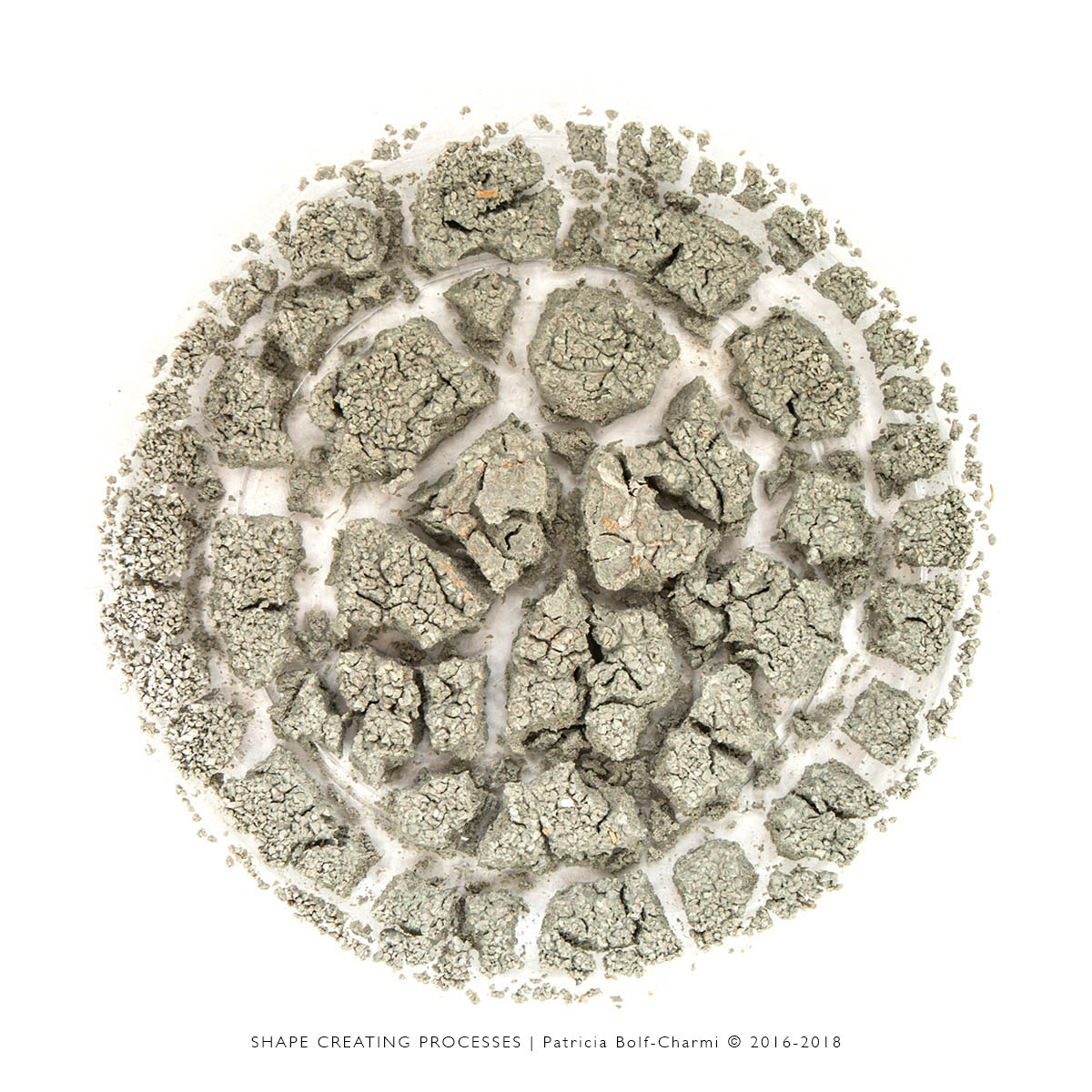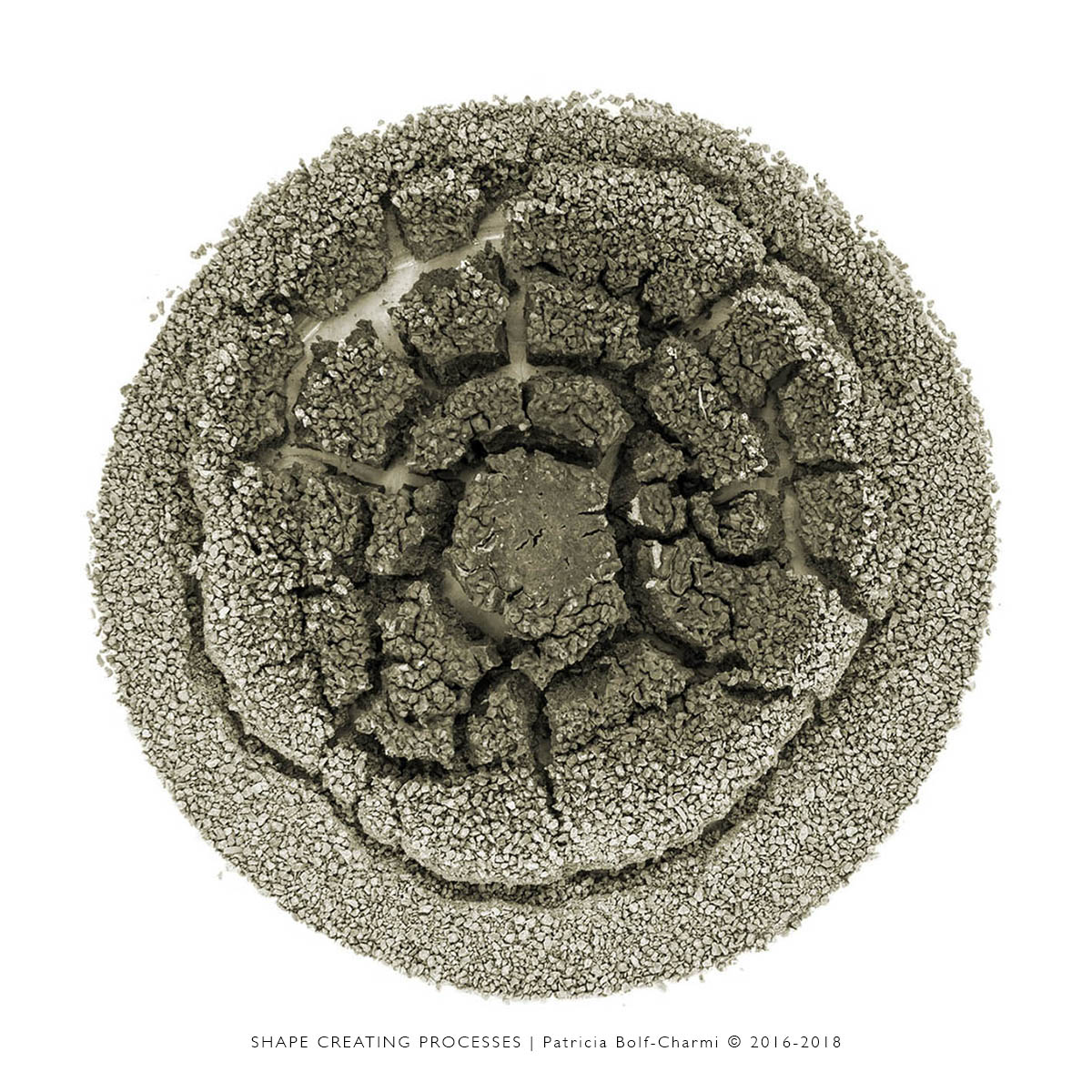 The shape creating process is induced by the continuous, dropwise increasing effect of water on the sedimentary rock (bentonite) in the dry state to the wet state in several intervals. This self-organized, relief-forming process is a scheme of geomorphological processes.